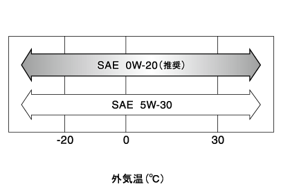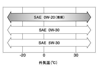 0W-20が入手困難な場合は、JASO DL-1 0W-30、5W-30もご使用いただけます。