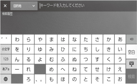 キーボードを使ってさまざまな情報を検索できます。T-Connectをご利用の場合は、クラウド上のコンテンツを活用した目的地検索を行うこともできます。