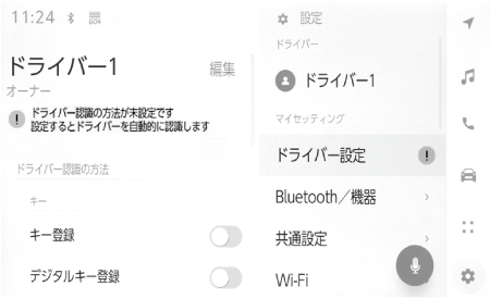 マルチメディアシステムの初期設定として、オーナードライバーの登録を行い、ドライバー設定機能を有効にします。
