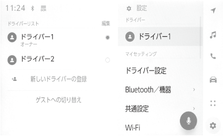 ドライバー設定を利用しない場合は、ゲストドライバーモードで車両を使用できます。