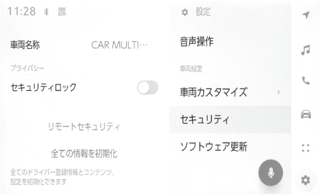 ]にタッチします。 - サブメニューの[セキュリティ]にタッチします。