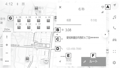 地図画面上の地点や施設の情報を確認することができます。