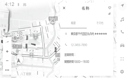 地図画面上のアイコンにタッチすると詳細が表示されます。営業時間などを確認できます。