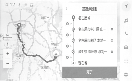 目的地を設定したあと、ルート上の通過する地点を設定することができます。