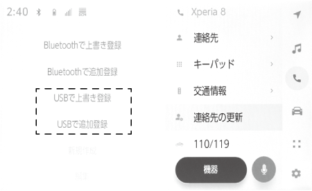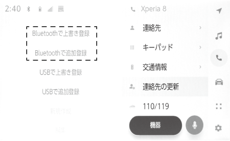 • 自動転送(PBAP)で連絡先データを転送したときに、機種によっては携帯電話の操作が必要な場合があります。
