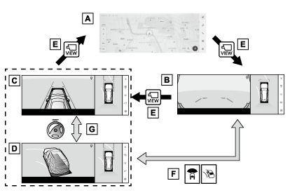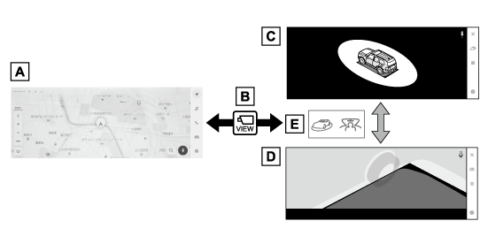 本文中で使用している画面のイラストは例であり、イラストと実際に映し出される映像では車両の映り込みなどが異なることがあります。