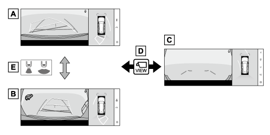 パノラミックビューモニターの表示や表示モードの切りかえをします。
