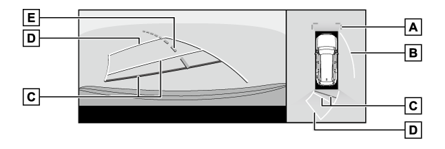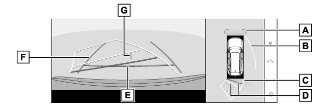 - 後方車幅延長線車をまっすぐ後退させたときの進路の目安を示します。