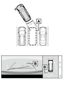 - 駐車ガイド線もっとも後方へ小まわりしたときの進路の目安を示します。