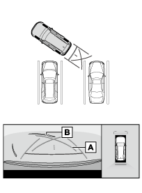 駐車時の安全確認を行うために、車両上方からの映像と後方カメラからの映像を表示します。