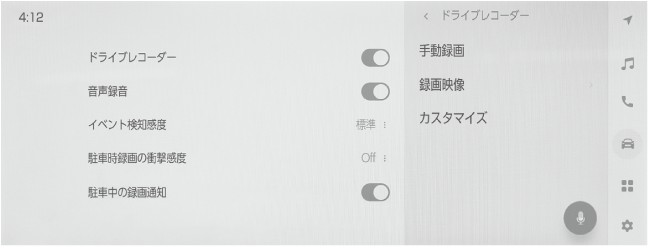 感度が高いほど、より小さい衝撃を検知します。駐車時イベント検知が多い、または少ないと感じる場合は、感度を調節してください。