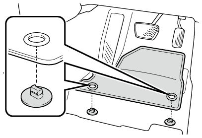 • エンジン停止およびシフトレバーがPの状態で、各ペダルを奥まで踏み込み、フロアマットと干渉しないことを確認する