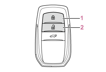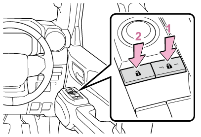 ワイヤレスリモコンを使用して、スマートエントリー&スタートシステムで解錠できるドアの設定を切りかえることができます。切りかえ操作は、車内または車から約1m以内の範囲で実施してください。