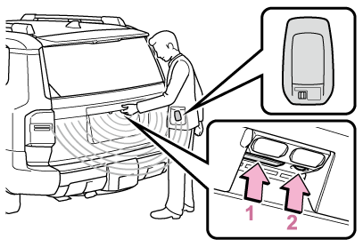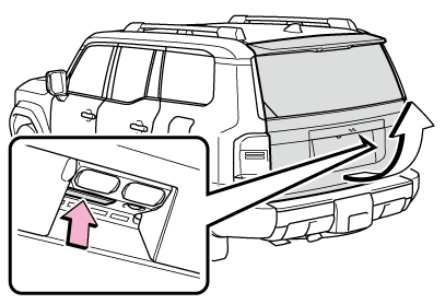 バックドア施錠時:電子キーを携帯して、バックドアオープンスイッチを押し続ける