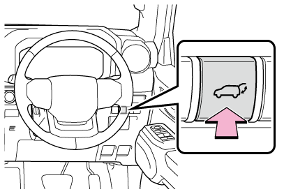 開閉作動中にスイッチを押すと、作動が停止します。作動が停止した状態から再度スイッチを約1秒間押し続けると、バックドアは反転作動します。