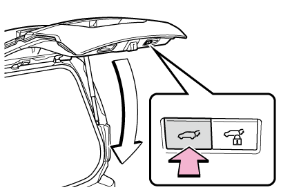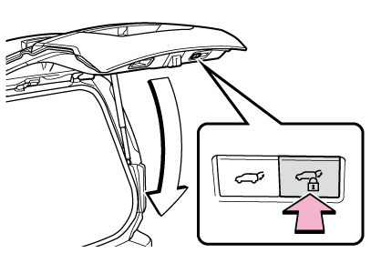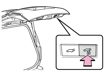 ただし電子キーを携帯してバックドアオープンスイッチを押し続けたときはバックドアが施錠されていてもパワーバックドアは作動します。(→バックドアのスイッチを使用して開閉する)