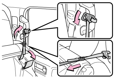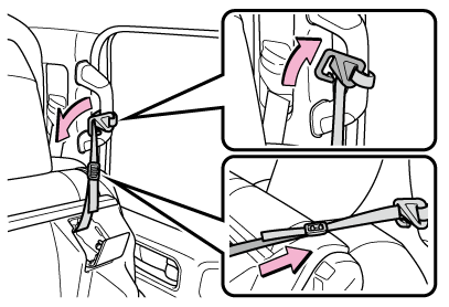 背もたれを必要以上に倒さないでください。事故のときに体がシートベルトの下にもぐり、腹部などに強い圧迫を受けたり、肩部ベルトが首にかかるなどして、重大な傷害におよぶか、最悪の場合死亡につながるおそれがあります。