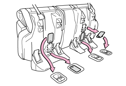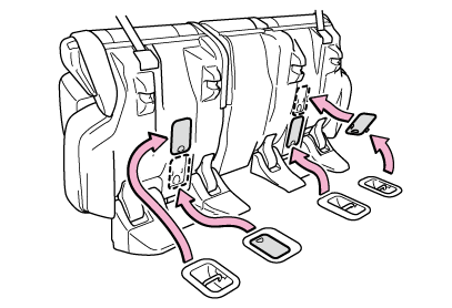 シートのあいだや動いている部分に手を近付けないようにしたり、体の一部が挟まれないようにしてください。