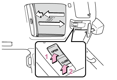 - スイッチの“CLOSE”側を押し続けるムーンルーフが閉じ、再び開き、10秒間停止します