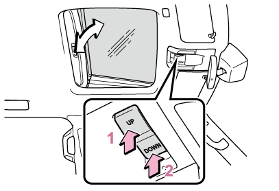- スイッチから一度手を離し、再度“UP”側を押し続けるムーンルーフがチルトアップの状態で10秒間停止し
