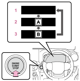電子キーを携帯して次の操作を行うことで、エンジンの始動またはエンジンスイッチのモードを切りかえることができます。
