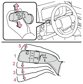 レバーを操作すると、ワイパーまたはウォッシャーが作動します。
