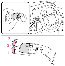 レバー操作でワイパーを作動させたり、ウォッシャーを作動させたりすることができます。