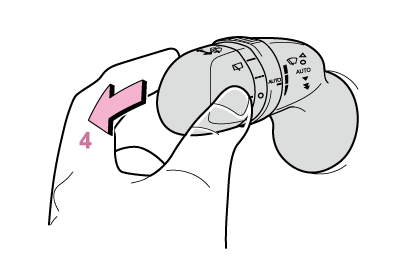 ウォッシャー液を出すレバーを前方へ押すとワイパーと連動してウォッシャーが作動します。パノラミックビューモニターのバックカメラ洗浄用ウォッシャーが作動します。