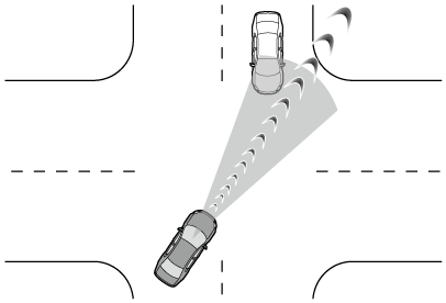 交差点など、側方から接近する車両や自動二輪車との衝突の可能性が高いとシステムが判断したとき、衝突警報およびプリクラッシュブレーキによる支援を行います。