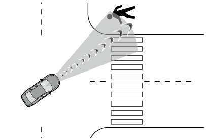 右左折待ちの作動対象などとすれ違うとき