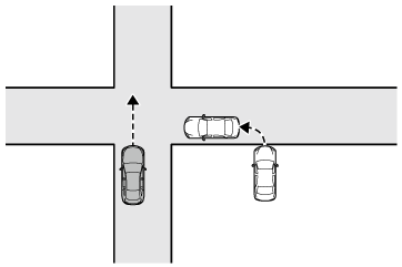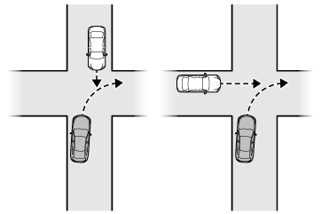 自車が低速で交差点などへ進入するとき、交差する車両の接近を検知して運転者へ注意喚起を行います。