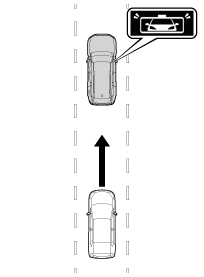 後方車両接近告知は、同じ車線を走行する後方車両が近づいた状況のとき、検知範囲に入った車両を検知します。