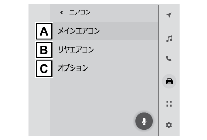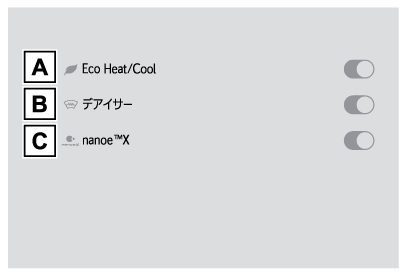 エアコン操作画面のオプション画面からエコ空調モードのON/OFFを切りかえることができます。(→エアコン操作画面について)