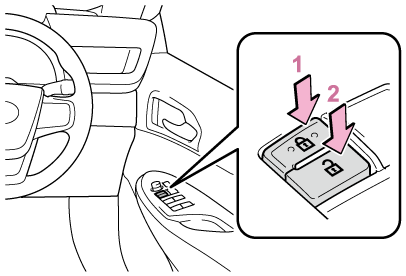 ワイヤレスリモコンを使用して、スマートエントリー&スタートシステムで解錠できるドアの設定を切りかえることができます。切りかえ操作は、車内または車から約1m以内の範囲で実施してください