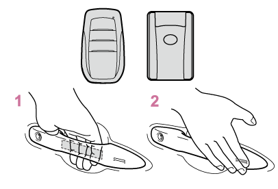 ドアハンドル表面のロックセンサーに指でふれても施錠できないときは、手のひらでロックセンサーにふれてください。