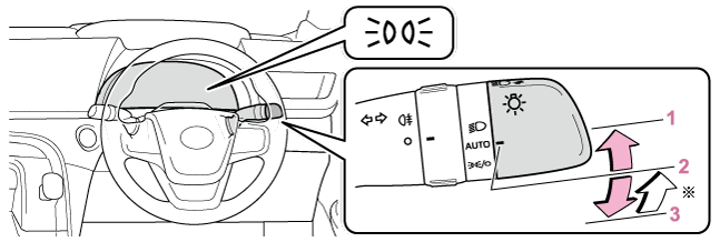 2 | LEDデイライト(→LEDデイライト)が点灯 | ヘッドランプ・スモールランプが点灯 |