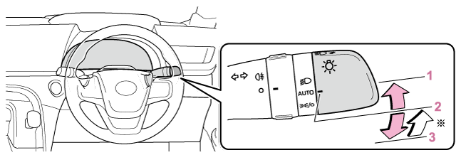 でワイパーを作動してしばらくすると、自車が他車から見やすくなるようにヘッドランプが自動点灯します。※:トヨタ販売店での設定変更が必要です。