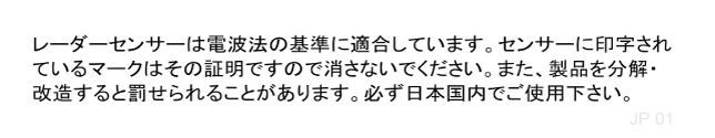 お守りいただかないと、レーダーが正常に作動せず、思わぬ事故につながり、重大な傷害におよぶか、最悪の場合死亡につながるおそれがあります。