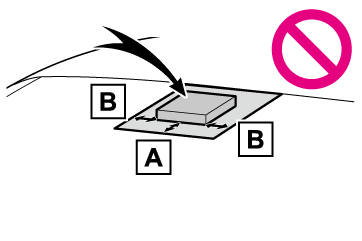 フロントウインドウガラスの前方カメラ前部(図に示す範囲内)にステッカー(透明なものを含む)などを貼り付けない