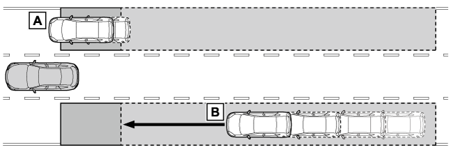 - ドアミラーインジケータードアミラーの死角領域に車両を検知したとき、または後方からその死角領域に急速に接近してくる車両を検知したときは、検知した側のドアミラーインジケーター(→表示灯一覧)が点灯します。検知した側に方向指示レバーを操作している場合は、ドアミラーインジケーターが点滅し、ブザーが鳴ります。
