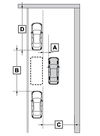 駐車時の路面や自車の状況/目標駐車位置までの距離などにより、設定した目標駐車位置に到達できない場合があります。
