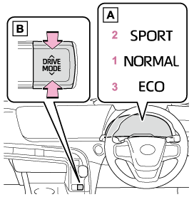- ドライブモードセレクトスイッチドライブモードセレクトスイッチを押すと、走行モードが切りかわります。
