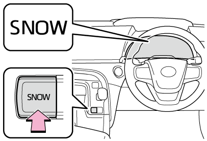 スイッチを押すとスノーモードに切りかわり、マルチインフォメーションディスプレイにスノーモード表示灯が点灯します。