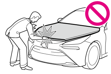 ボンネットを閉めるときは、体重をかけるなどして強く押さないでください。
