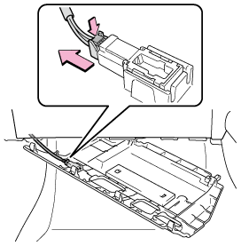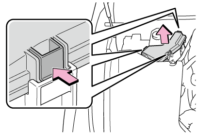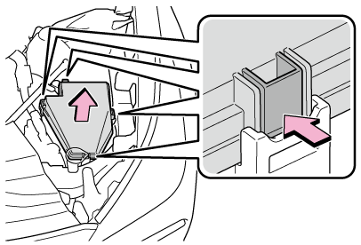 FCユニットルームカバーを取りはずし(→FCユニットルームカバーの取りはずし)、ツメを押しながら、カバーを持ち上げる