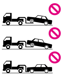 車両の損傷を防ぐために図のようなレッカー車ではけん引しないでください。