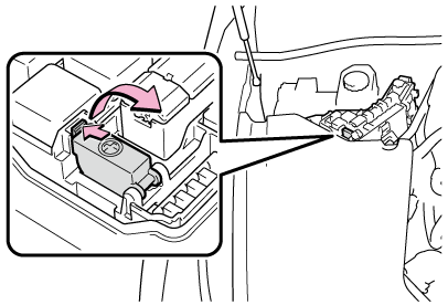 補機バッテリー端子をはずすと、コンピューターに記憶されている情報が消去されます。補機バッテリー端子をはずすときは、トヨタ販売店にご相談ください。