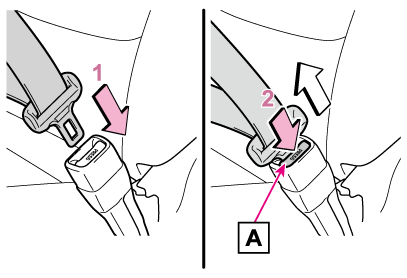 • プレートがバックルに確実に挿し込まれているか、シートベルトがねじれていないかを確認してください。うまく挿し込めない場合はただちにトヨタ販売店に連絡してください。
