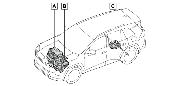 • ハイブリッドシステム始動時や停止時に聞こえる車両後方および駆動用電池からの音