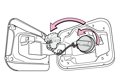 すぐに開けると、気温が高いときなどに、給油口から燃料が噴き出るおそれがあります。